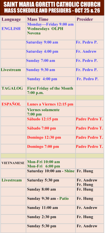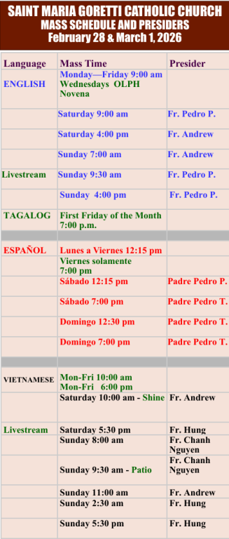 Mass Schedule and Presiders